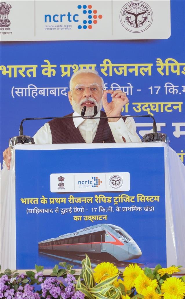 He also flagged off the Namo Bharat RapidX train connecting Sahibabad to Duhai Depot, marking the launch of the Regional Rapid Transit System (RRTS) in India.