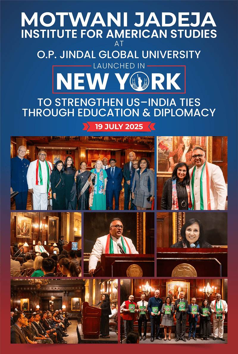 In a landmark initiative aimed at deepening India-US academic engagement and global leadership, O.P. Jindal Global University (JGU) inaugurated the Motwani Jadeja Institute for American Studies (MJIAS) in New York to focus on research, public policy, education, innovation, and cultural exchange between India and the United States.