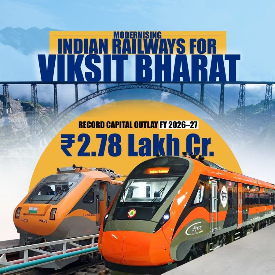 A record capital expenditure of Rs.293,030 crore has been planned for Indian Railways in Union Budget 2026–27. This is the highest-ever capex as well as allocation for Indian Railways.